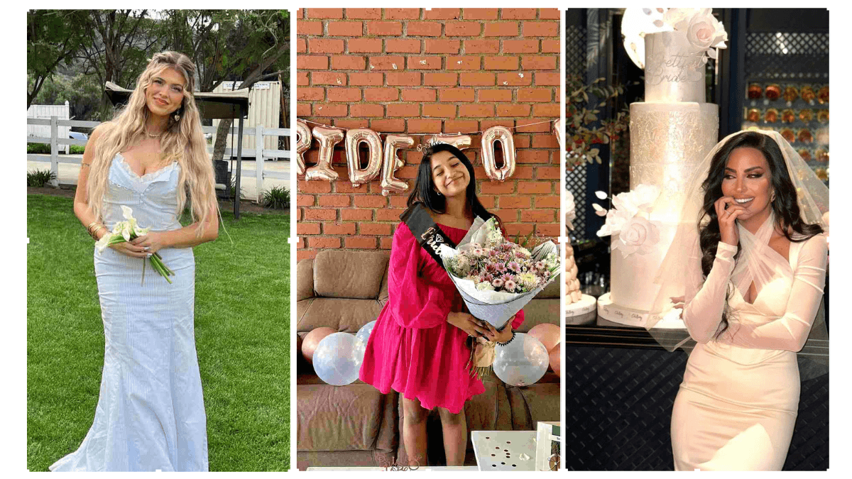 Paired with a custom sash reading “Bride to Be,” the ensemble feels personal and heartfelt. These touches allow the bride to stand out in a fun yet sophisticated way.